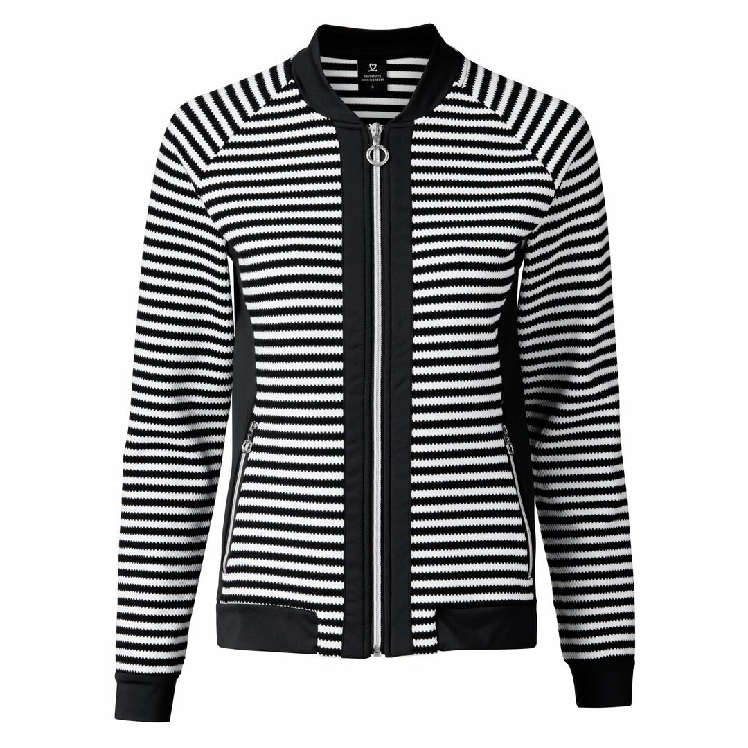Jacke . Stretchmaterial mit Jacquardstreifen Reißverschluss vorne Zwei Reißverschlusstaschen Einfarbig an Kragen, Bündchen und Reißverschluss