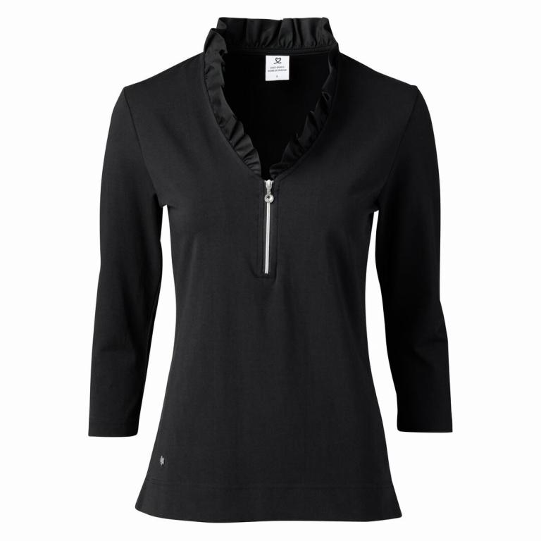 Polo 3/4 Arm Stretch-Baumwollstoff Rüschenkragen aus Popeline Kurzer Reißverschluss vorne