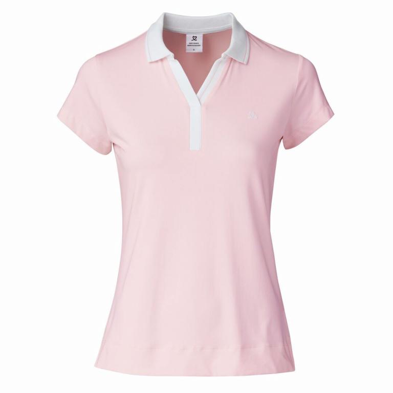 Polo Kurzarmlänge 13 cm Recycelter Stoff Schnell trocknendes Stretchmaterial Gestreifter Kragen Seitenschlitze Gesticktes Logo auf der Brust
