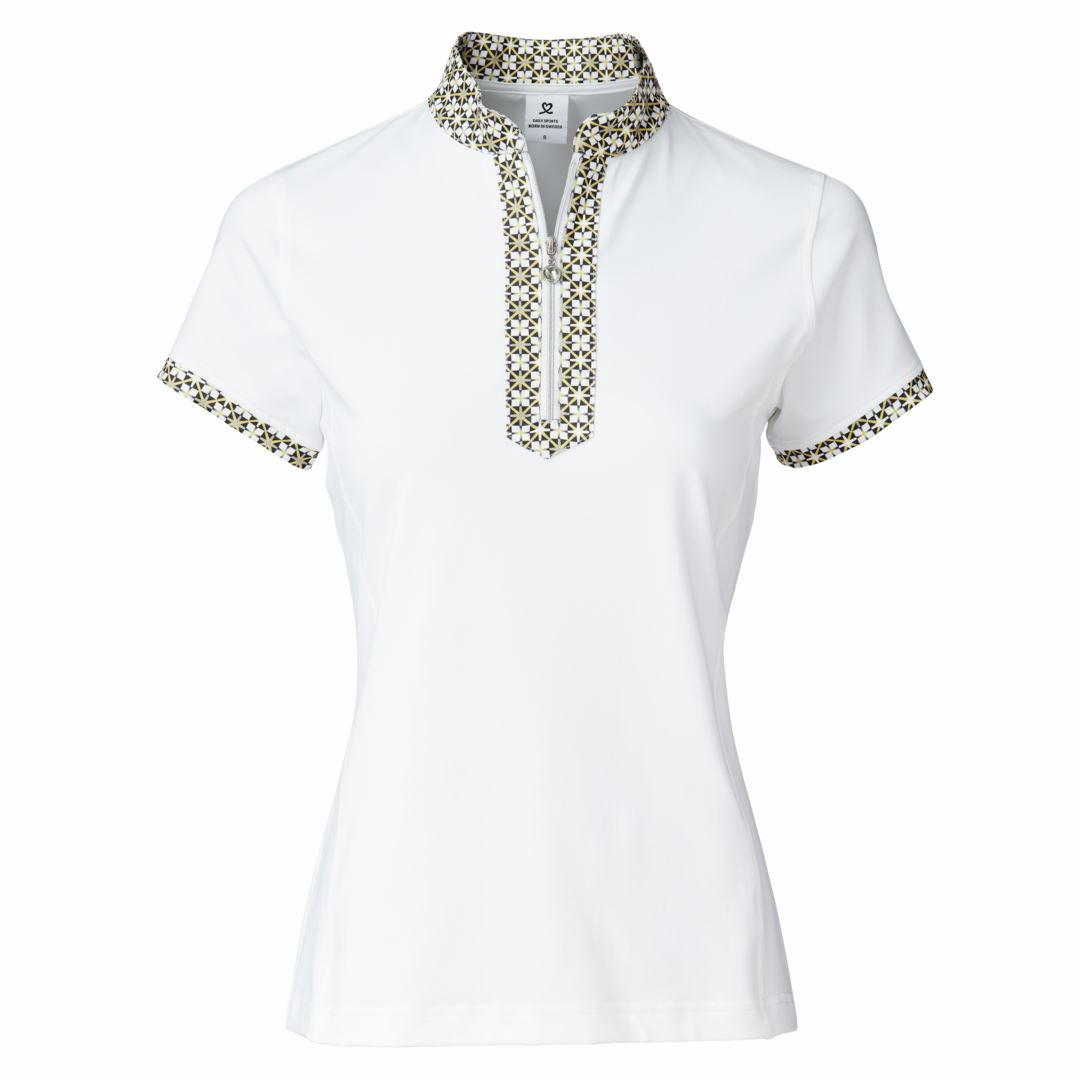 Polo Kurzarmlänge 14 cm Schnell trocknendes Stretchmaterial Frontreißverschluss mit Strass Kontrastdruck um Reißverschluss, Kragen und Ärmel