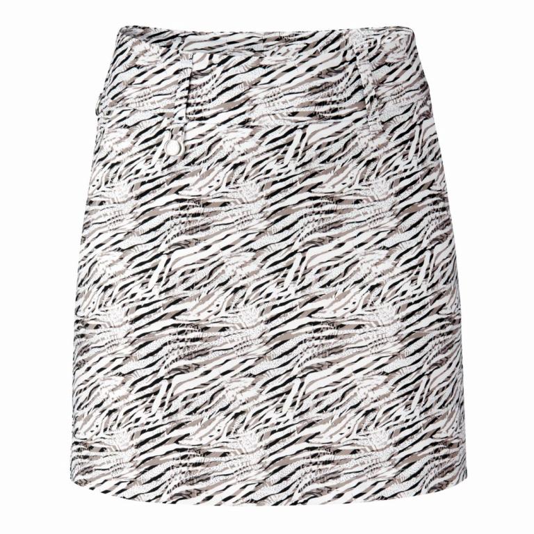 Skort 52cm . Super-Stretch-Gewebe Schmale Passform Zwei Fronttaschen Zwei Gesäßtaschen Taillenbund Ballmarker Silberfarbenes gesticktes Logo hinten Silberfarbener Logo-Ring hinten Innenshorts Allover-Print
