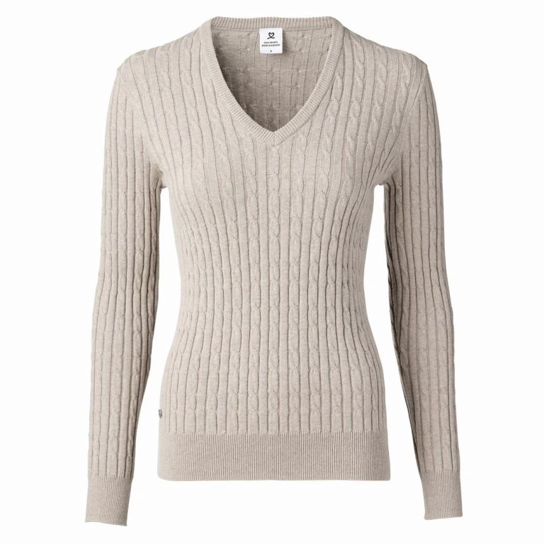 Pullover langarm Weicher Baumwoll-Kaschmir-Mix V-Ausschnitt Allover Zopfstrick Femininer Schnitt