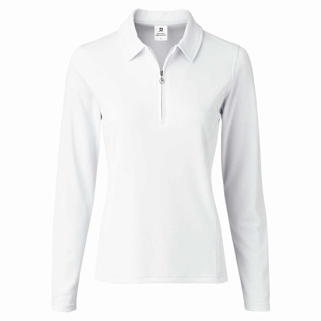 Polo Langarm Schnell trocknendes Stretchmaterial Kurzer Frontreißverschluss mit Strassstein am ReißverschlussschieberFarbe: white