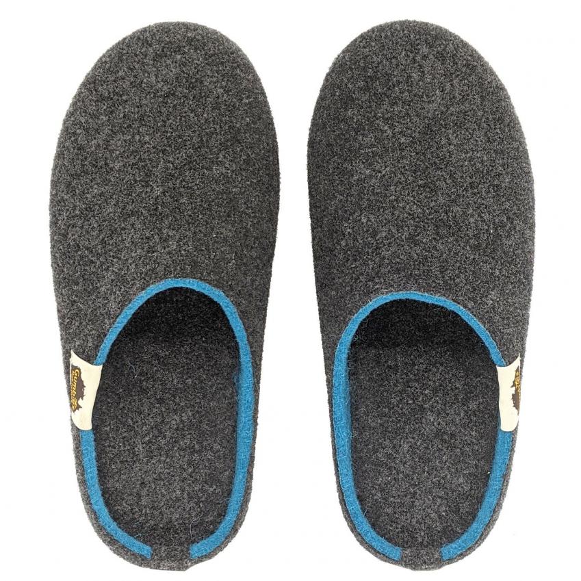 Grau-Türkise Puschen - Entspannt durch die kalte Jahreszeit