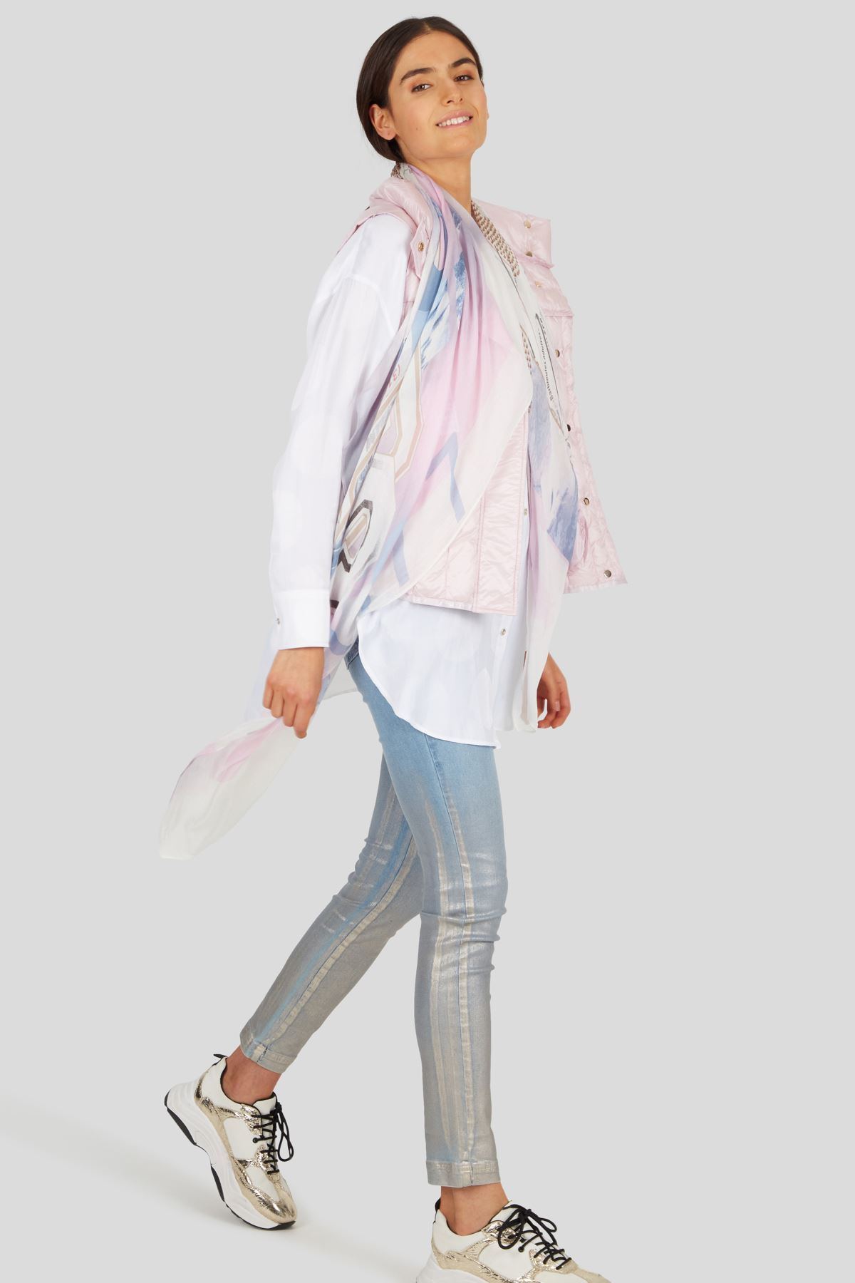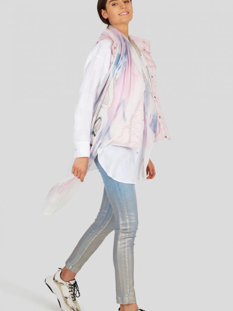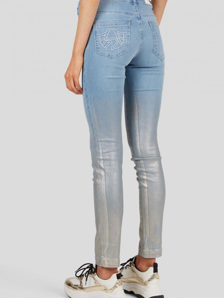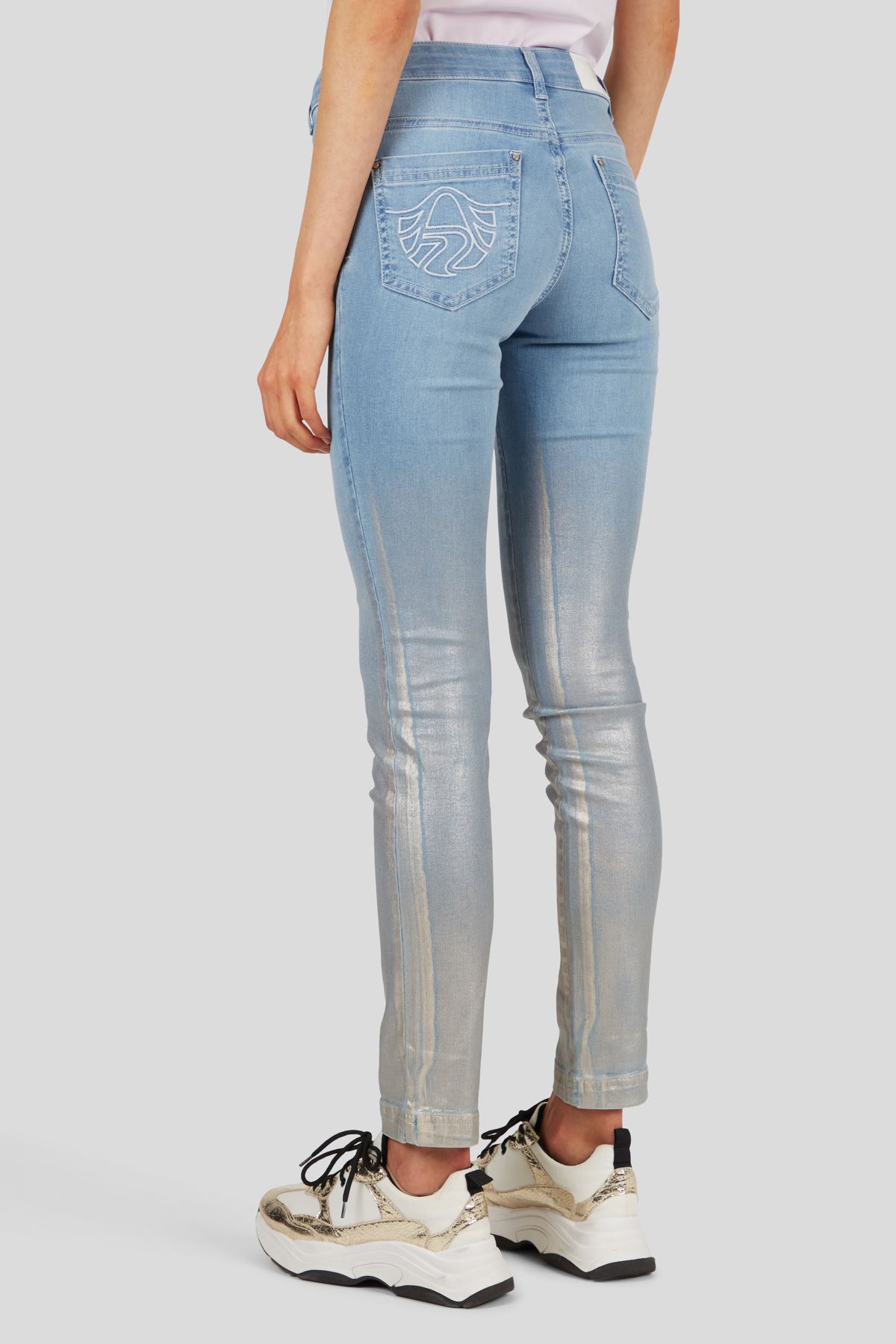 Außergewöhnlich präsentiert sich diese Skinny fit-Jeans. Das hochwertige, stretchige Material ermöglicht eine sexy Schnittführung, ohne an Komfort einzubüßen. Das Highlight dieser Jeans ist der modische Metallic-Folien-Druck am Hosenbein, der in einem Farbverlauf endet. Farbliche Akzente werden durch die Nieten in der Modefarbe Icegold gesetzt. Raffiniert ist die Sportalm-Logostickerei auf der Gesäßtasche und das hochwertige Sportalm-Denim-Label ist am Bund hinten fixiert.