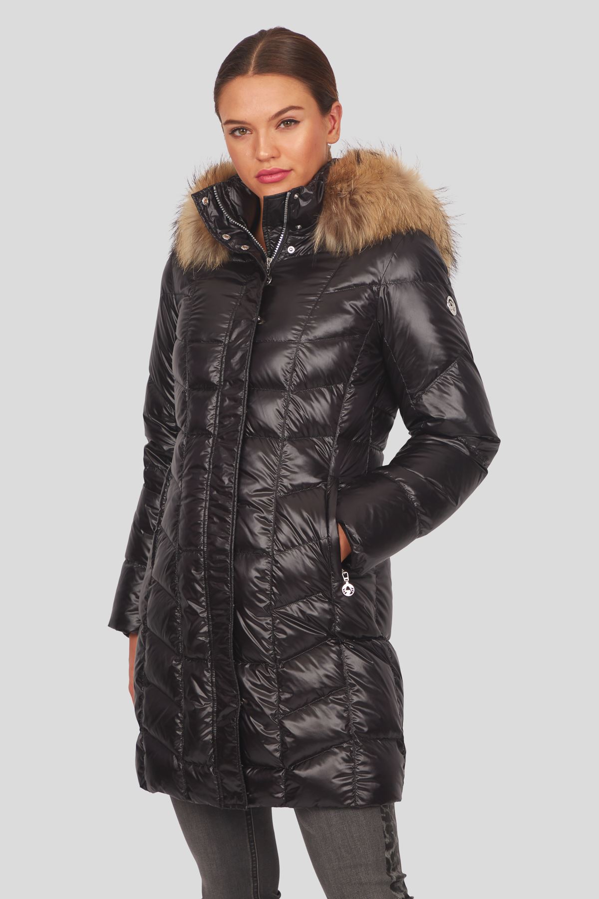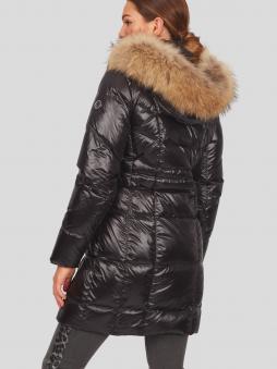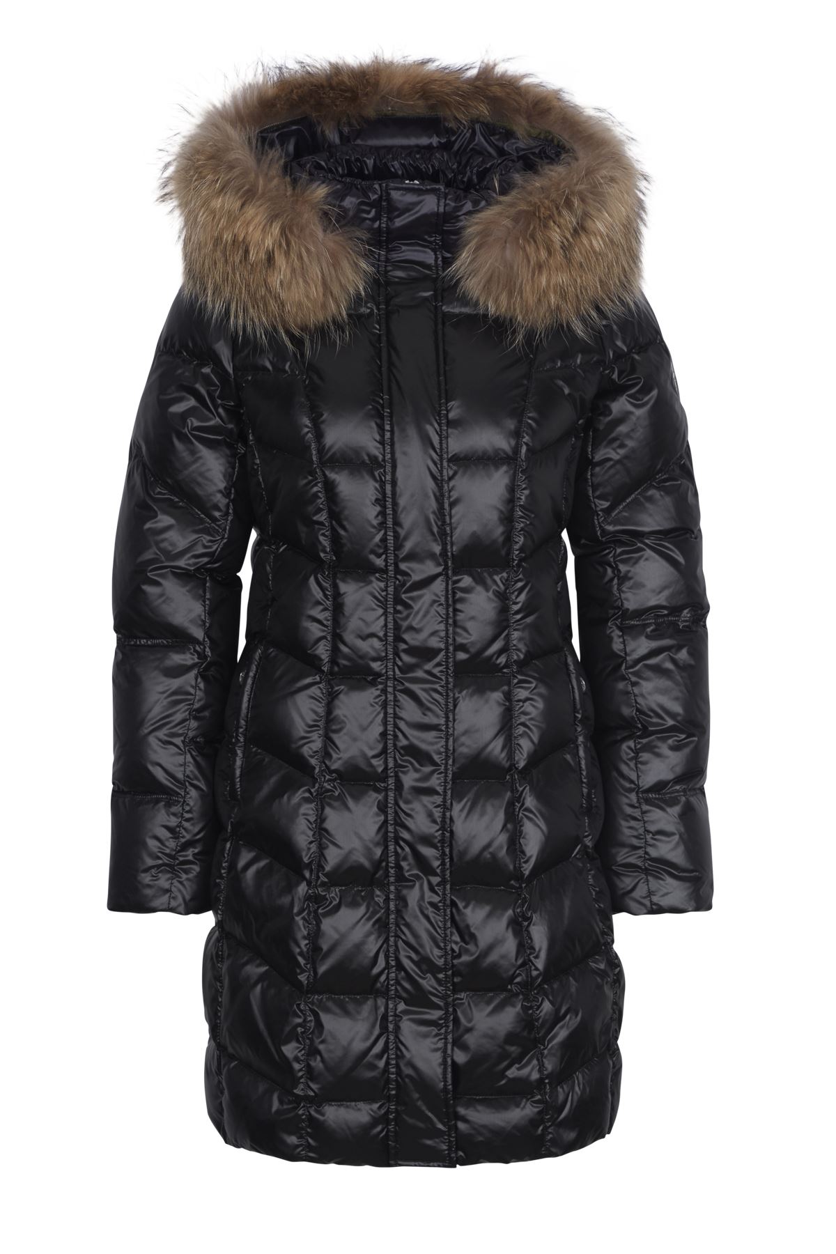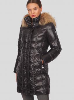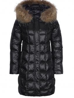 Ein Schmuckstück in weißer Winterlandschaft ist dieser elegante, lässige Daunenmantel aus superwarmer weicher 80/20 Enten Daunenfüllung. Schön anzusehen sind die Längs- und Querstepps die den Mantel überziehen. Praktisch zeigen sich die seitlichen Leistentaschen mit Reißverschlüssen sowie eine abzippbare Kapuze mit einem separat abnehmbaren Echtpelzkragen (Finnraccoon) und Windfangbündchen aus Fleece an den Ärmeln. Ein kleiner Logostick am Ärmel unterstreicht den eleganten Touch dieses wunderbaren Sportalm Daunenmantels.