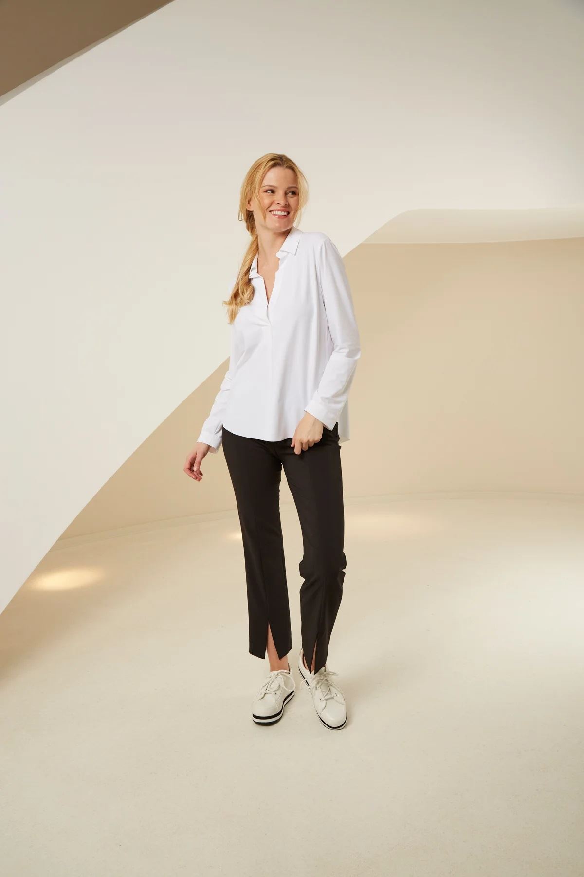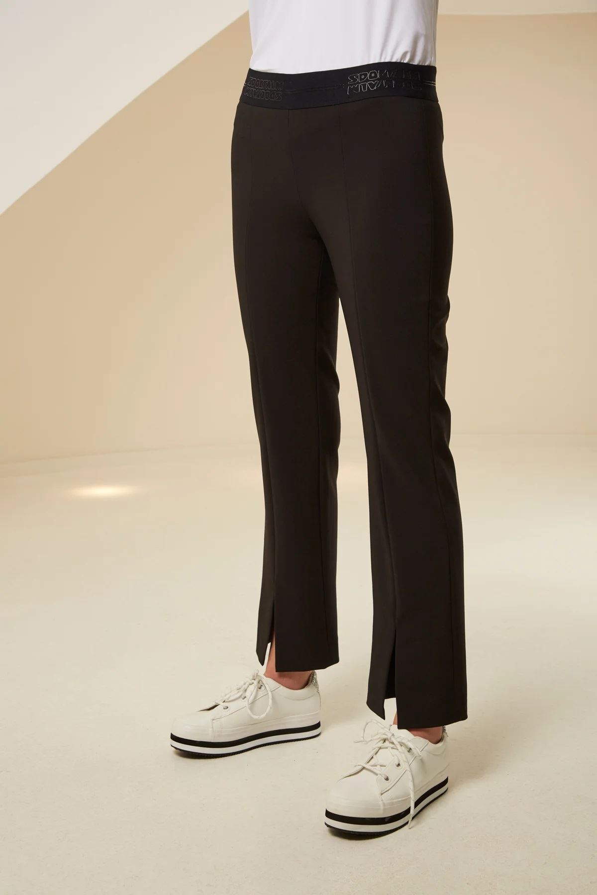 Elegant fällt diese Hose in einem geraden Schnitt. Eine elastische Stretchqualität kombiniert mit einem Gummibund mit Sportalmschriftzug, sorgt für einen bequemen Tragekomfort. Schick und trotzdem sportlich, erweist sich diese Hose als perfekter Alltagspartner. Ein besonderes Highlight zeigt sich am Hosensaum, welcher mit einem Schlitz in der Vorderseite versehen ist.