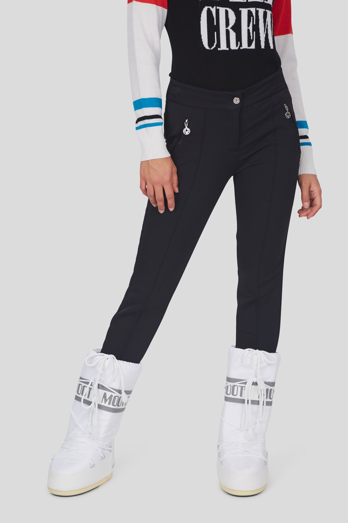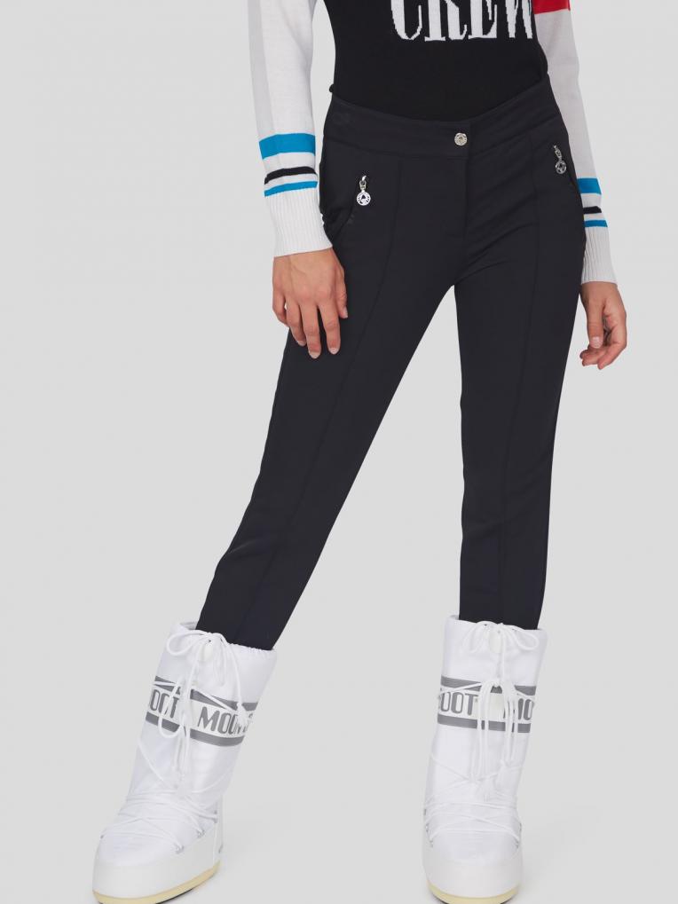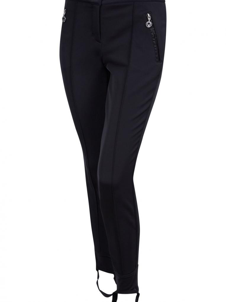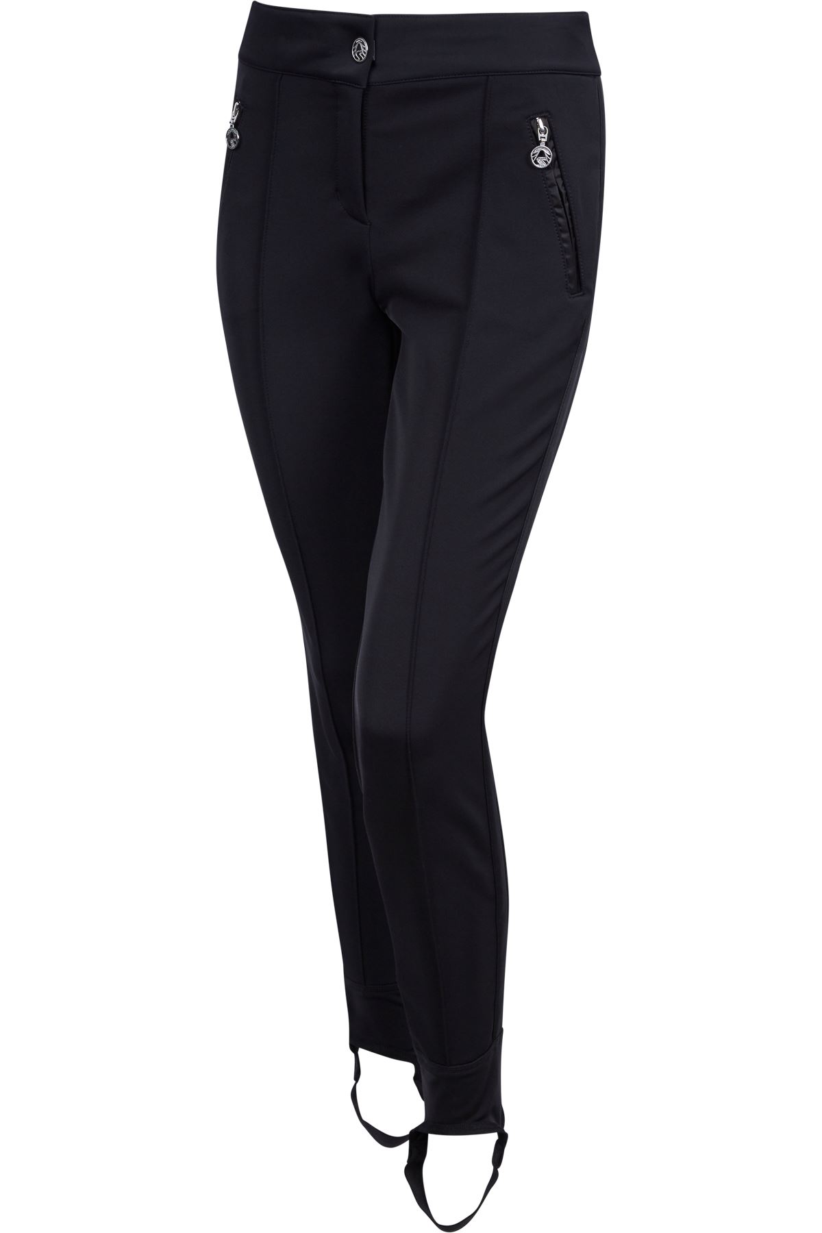 Sportive Sportalm Keilhose aus angenehmen Softshellmaterial und elastischem Powerstretch am Saum. Die Keilhose wird mit einem Steggummi fixiert um einen festen Halt zu erzeugen. Die Seitennaht präsentiert sich mit einem edlen Satinband. Seitliche Reißverschlusstaschen bieten Platz für Kleinigkeiten.