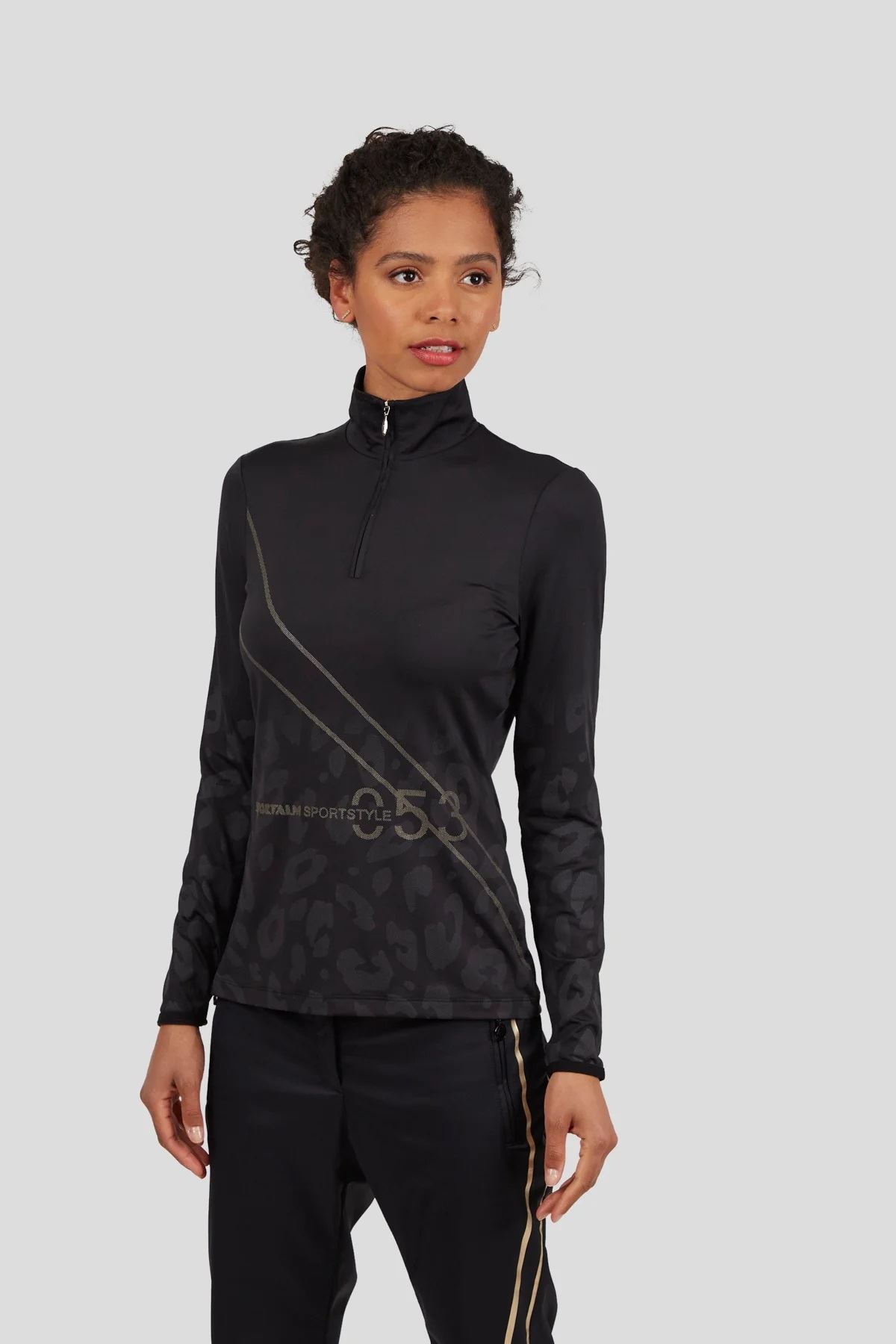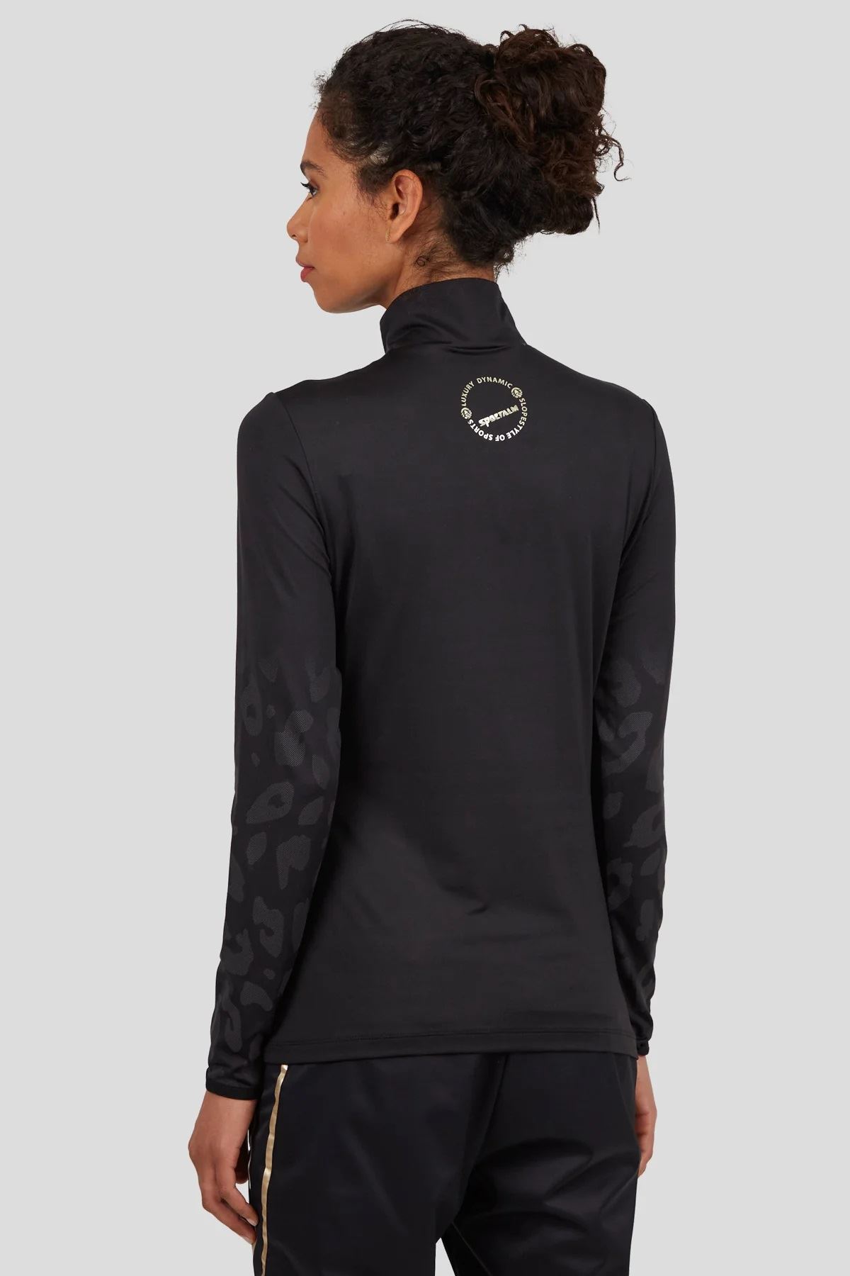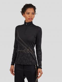 Sportiv zeigt sich dieser Unterzieher in einer tailliert geschnittenen Linie. Der First Layer ist mit einem kleinen Stehkragen gestaltet, welcher bis oberhalb der Brust geöffnet werden kann. Besonders zeigt sich ein platzierter, nach oben auslaufender reflektierender Pünktchentransfer in Form von Leopardenflecken. Dieser zeigt sich an den Ärmelsäumen und im unteren Bereich des Vorderteils. Das Vorderteil wird zusätzlich mit geschwungenen Linien und einem Wording in icegold gestaltet. Und auch am unifarbenen Rückenteil ist ein rundes Transfermotiv platziert. Ein absolutes Must-Have für unvergessliche Tage auf der Piste.