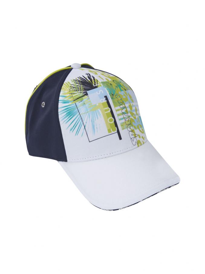 Modisch, sportliche Schirmkappe bedruckt in einem ALL OVER Kollektionsprint. Lässig zeigt sich rückwärts ein Netzeinsatz. Die Kappe ist easy Größenverstellbar. Ein Hingucker ist der Schriftzug entlang des Schirms.