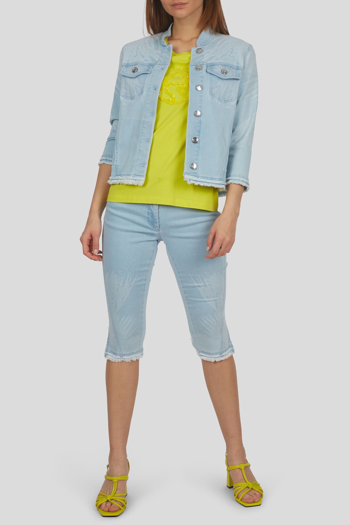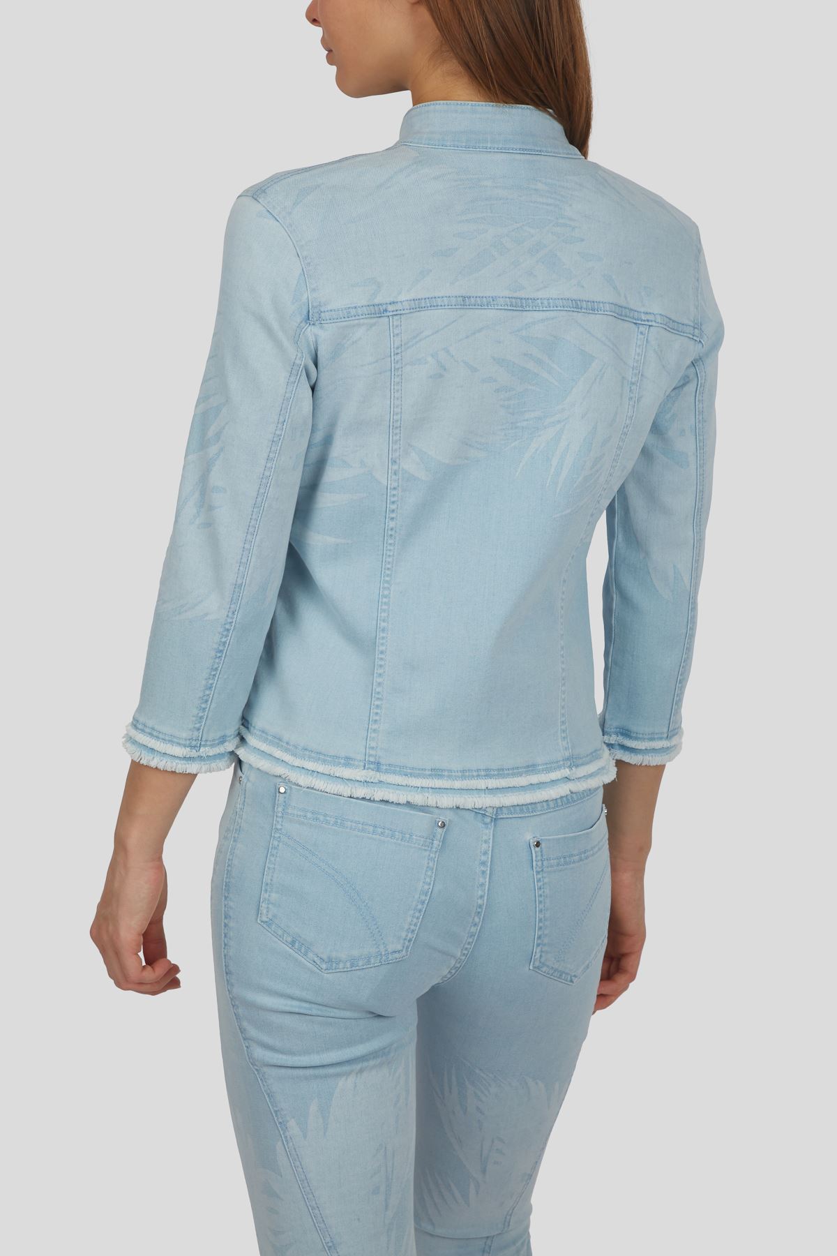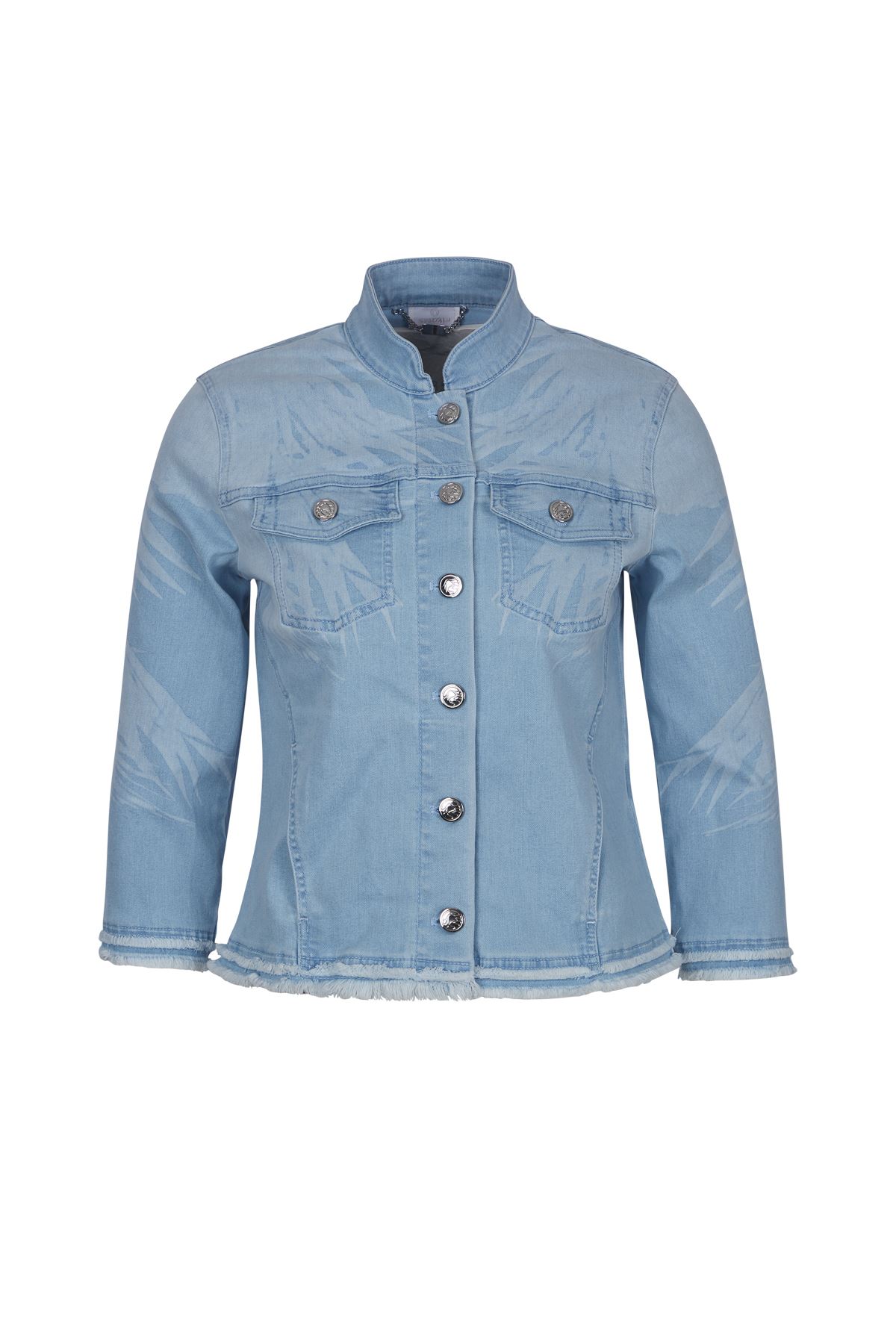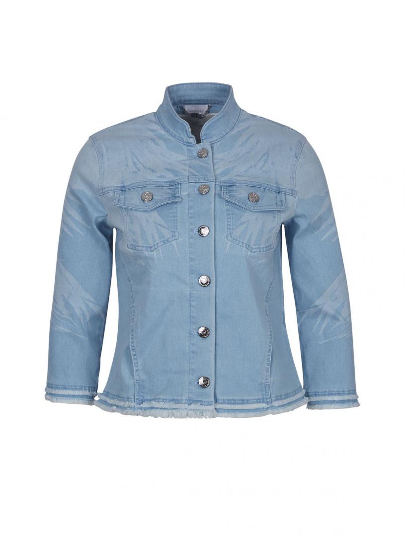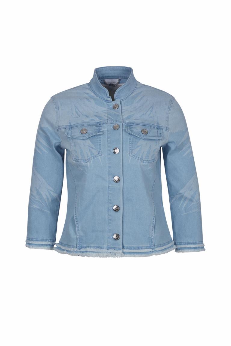Immer gut für einen modischen Auftritt ist diese Sportalm Denim Jacke mit Stehkragen! Die kurze, süße Jeansjacke präsentiert sich mit 3/4 Arm, Doppelkanten an Ärmeln- und Längensaum sowie einer sportiven Schnittführung. Die Jacke wurde mit einem All Over Palmen-Lasermotiv versehen.