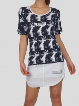 Dieses Sportalm Rundhals-Shirt punktet durch einen pfiffigen ALL OVER Palmenprint sowie einem glänzenden "PARADISE" Schriftzug. Eine edle Baumwoll-Qualität verspricht einen angenehmen Tragekomfort.