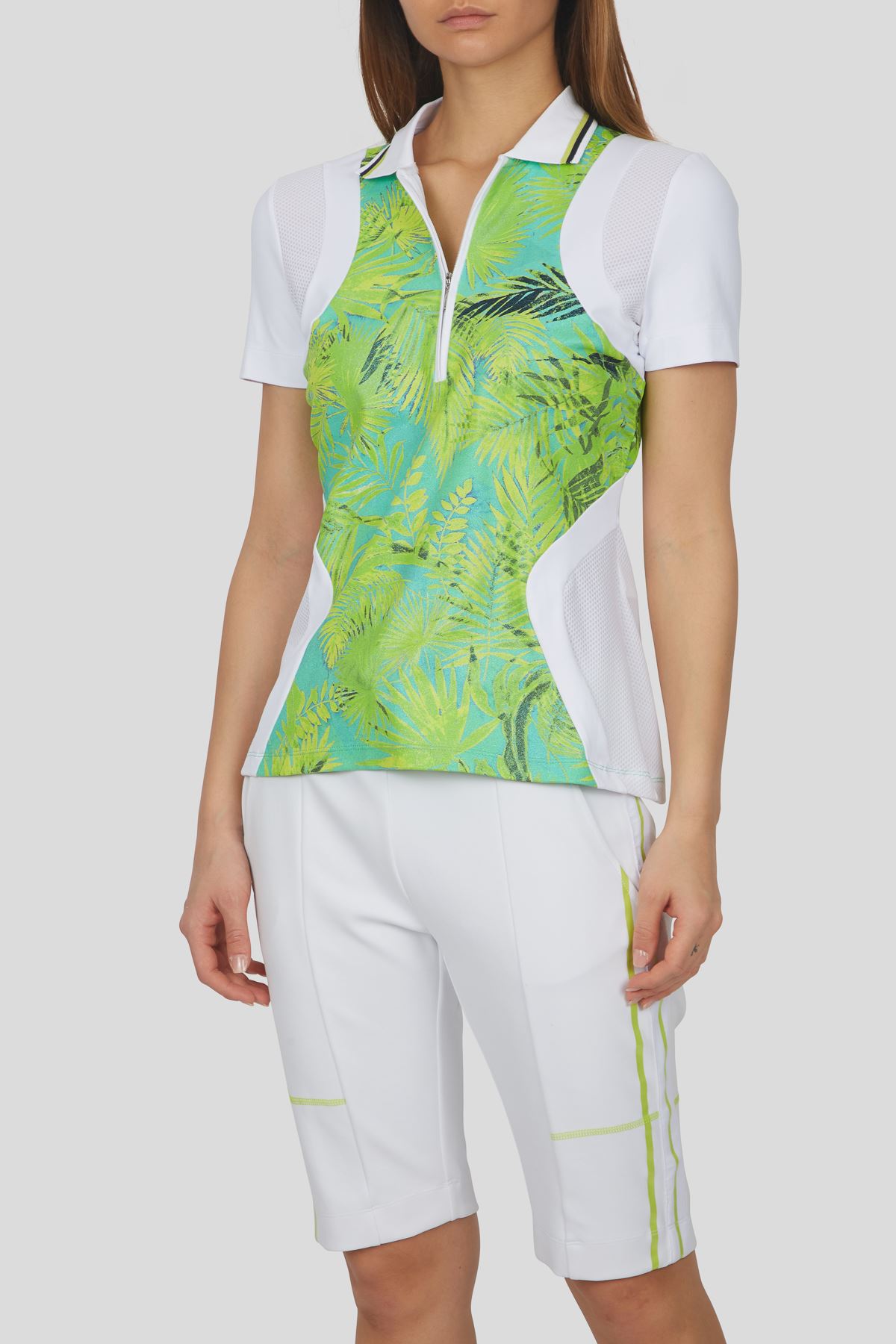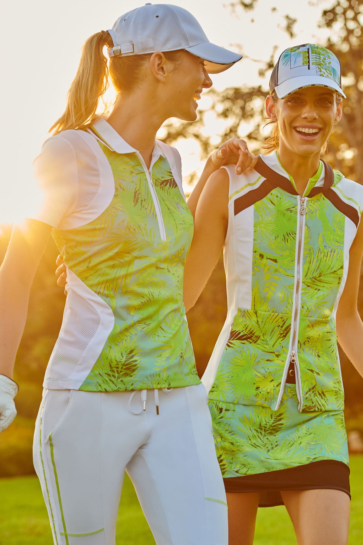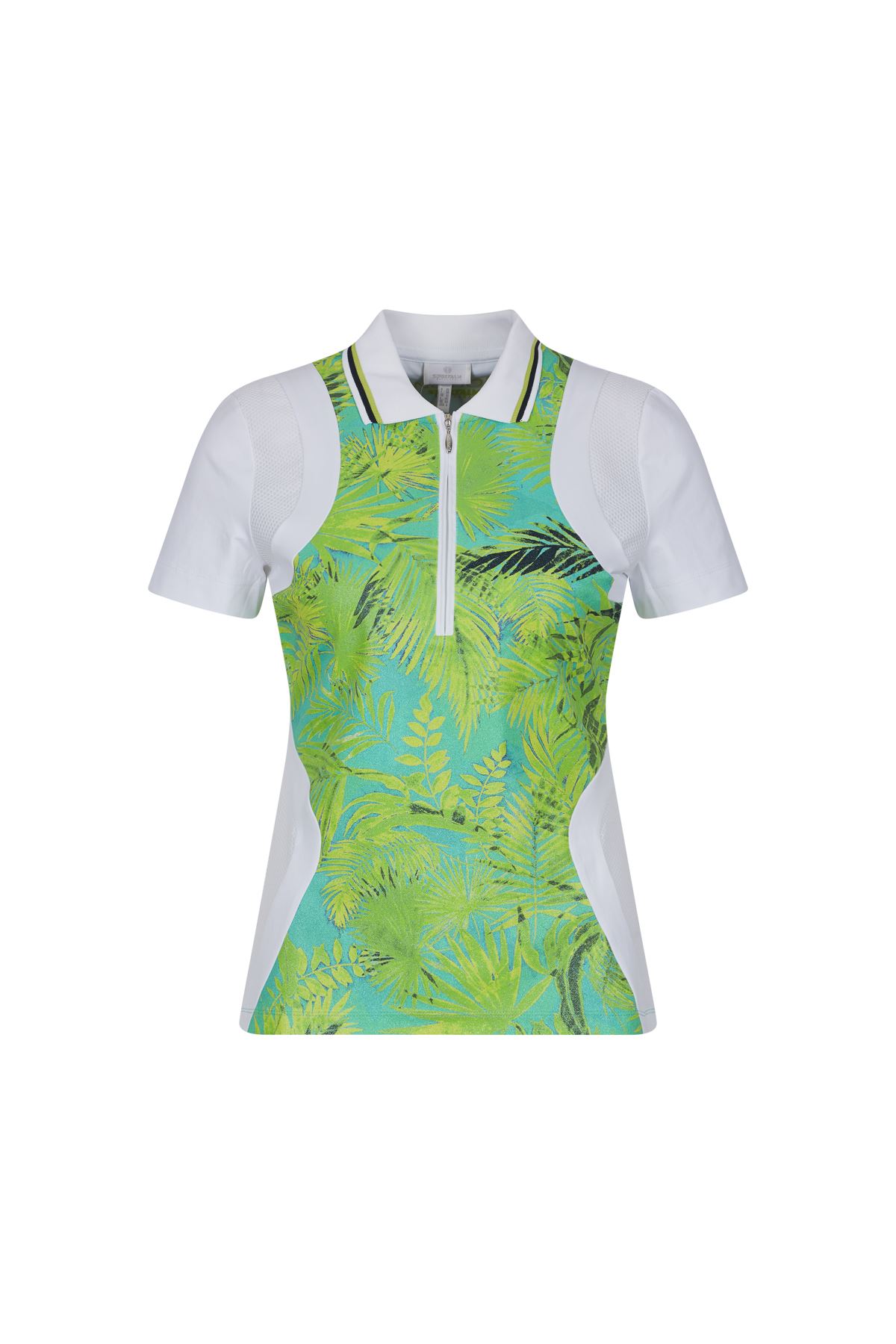 Mit diesem Sportalm Poloshirt mit Reißverschluss aus Piquee-Ware stehen Sie im Blickpunkt des Geschehens. Dieses tolle bedruckte Modell ist mit einem farbenfrohen Palmendruck ausgestattet. Seitliche Einsätze aus strukturiertem Waffeljersey in Kontrast werden Sie lieben. Edles Lurex-Garn sowie ein Schriftzug-Print an der Rückenmitte versprechen einen sportlichen Auftritt.