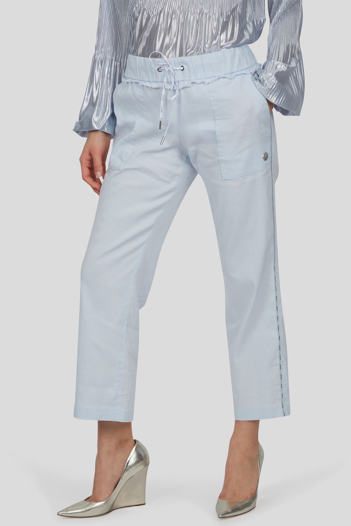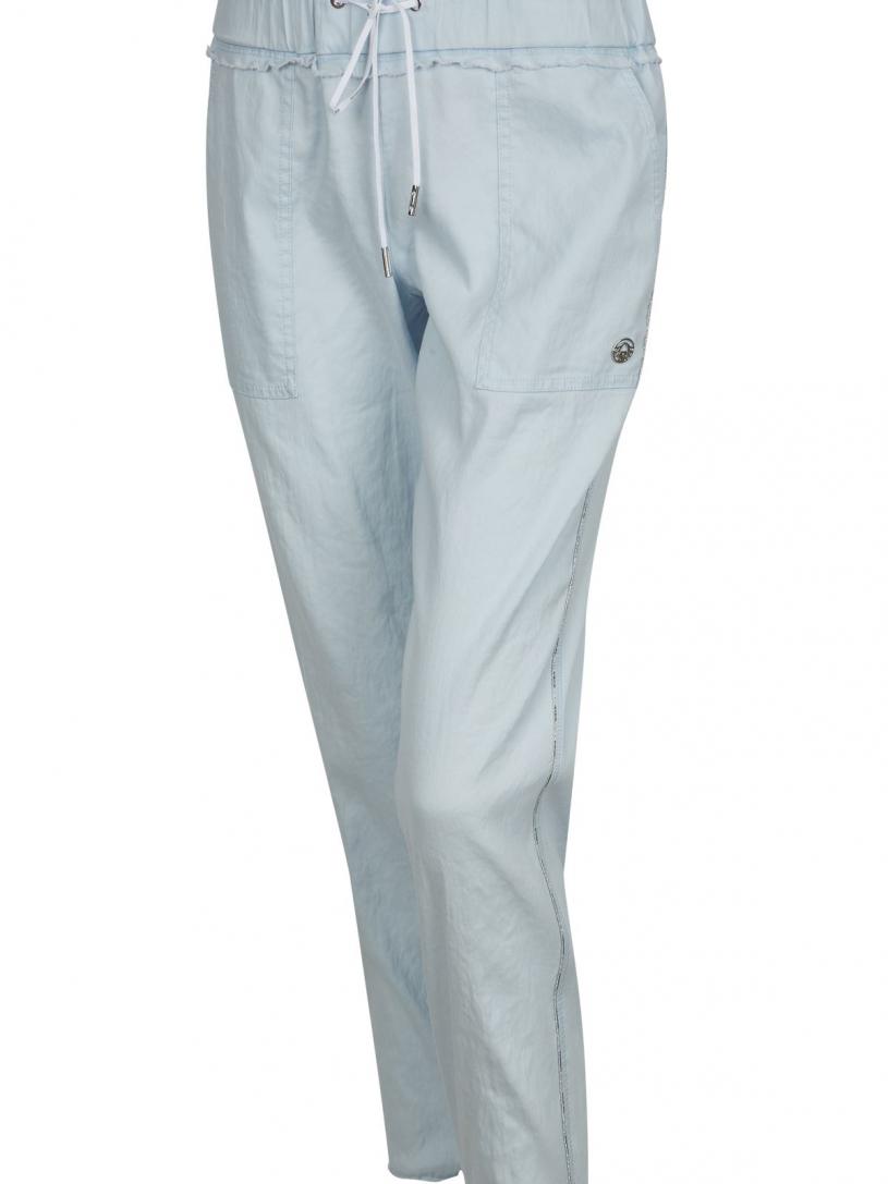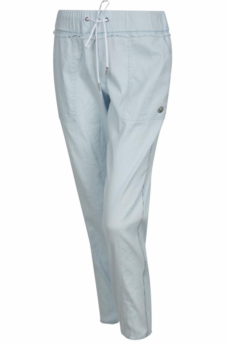 Diese sommerliche Hose zeigt sich in einer luftiger Leinen-Qualität mit Bündchen an Bund und Hosensaum. Lässig zeigt sich ein Tunnel mit Kordelzug. Spannende Details wie das Paspelband in der Seitennaht sowie die aufgesetzten Gesäßtaschen mit tiefen Eingriffstaschen an der Vorderhose ziehen Blicke nach sich.