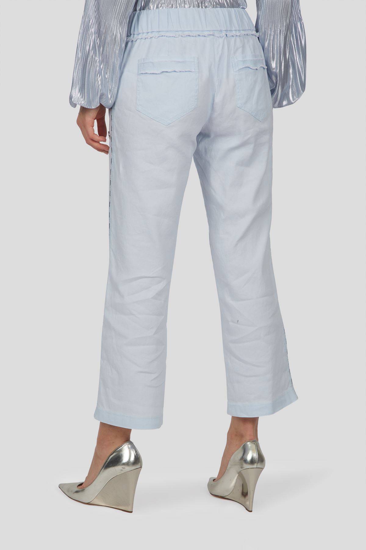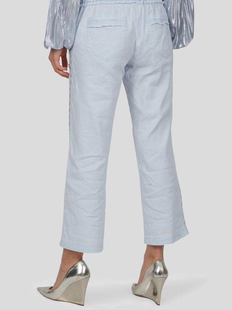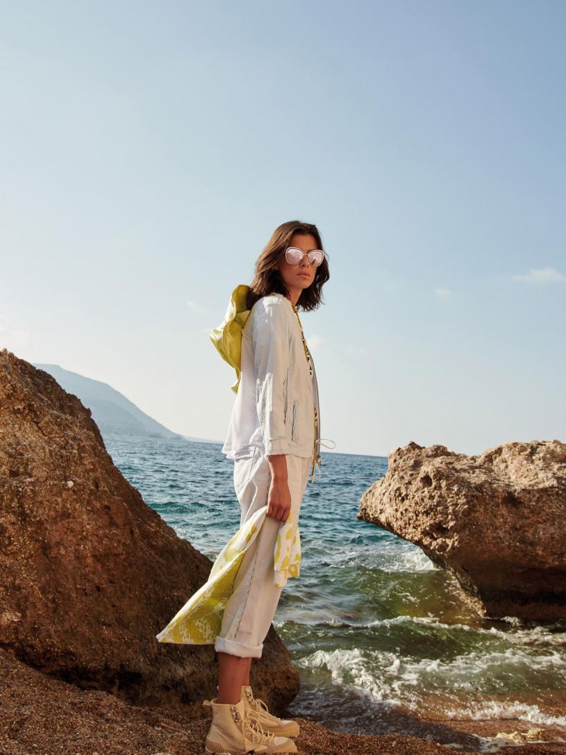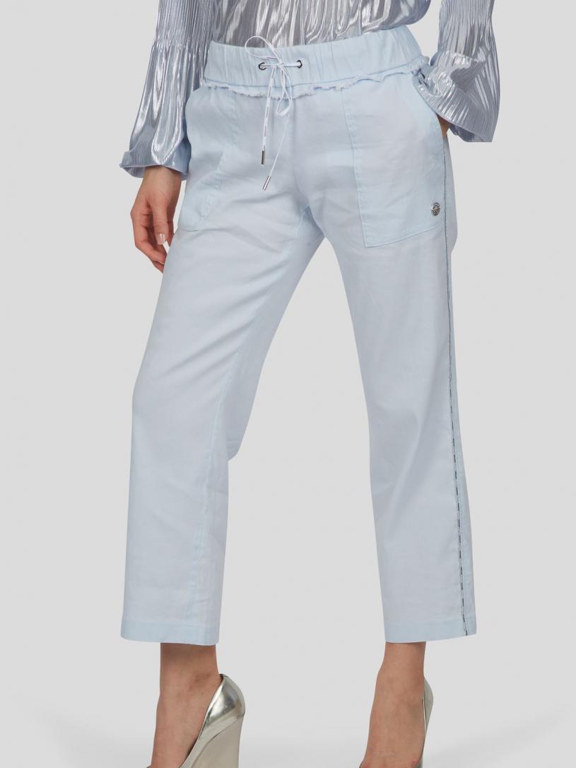 Diese sommerliche Hose zeigt sich in einer luftiger Leinen-Qualität mit Bündchen an Bund und Hosensaum. Lässig zeigt sich ein Tunnel mit Kordelzug. Spannende Details wie das Paspelband in der Seitennaht sowie die aufgesetzten Gesäßtaschen mit tiefen Eingriffstaschen an der Vorderhose ziehen Blicke nach sich.