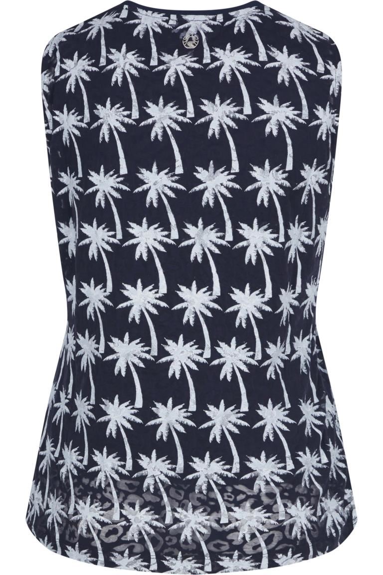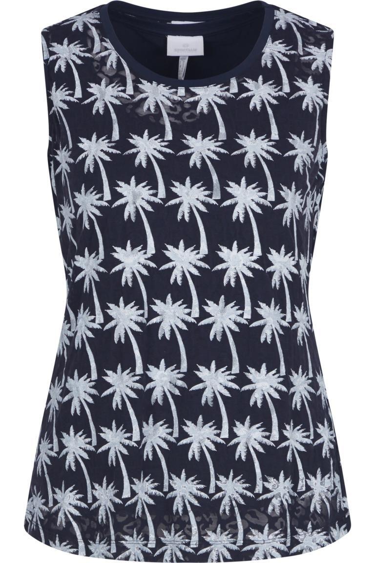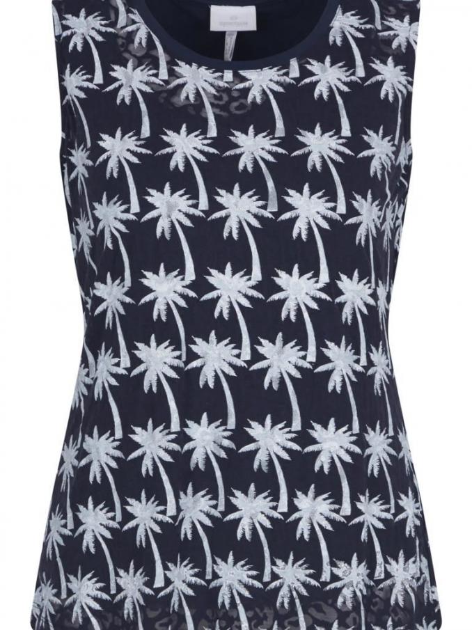 Extravagant präsentiert sich dieses Shirt im modischen Lagenlook. Softe Viskose-Jersey-Qualität verspricht einen angenehmen Tragekomfort in der ersten Lage. Ein zweites Shirt aus durchscheinender Ausbrenner- Material präsentiert sich in einem All Over Palmenmotiv. Dieses außergewöhnliche T-Shirt peppt jedes Outfit überraschend auf!