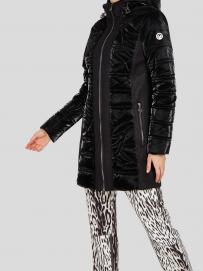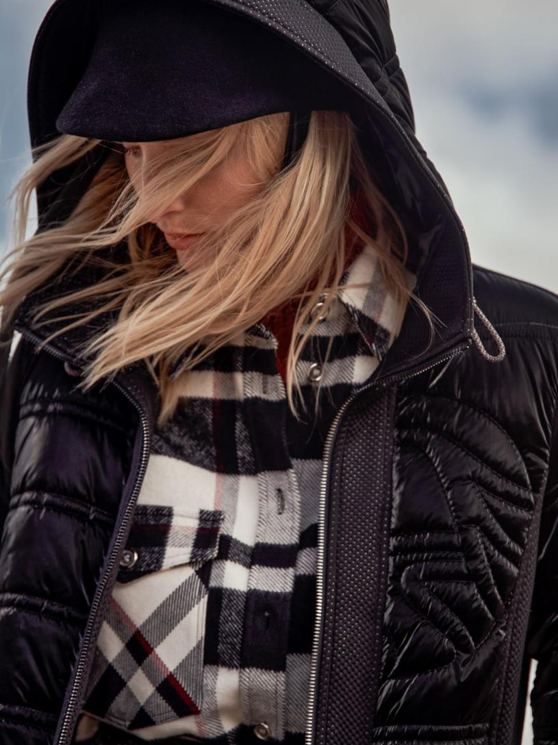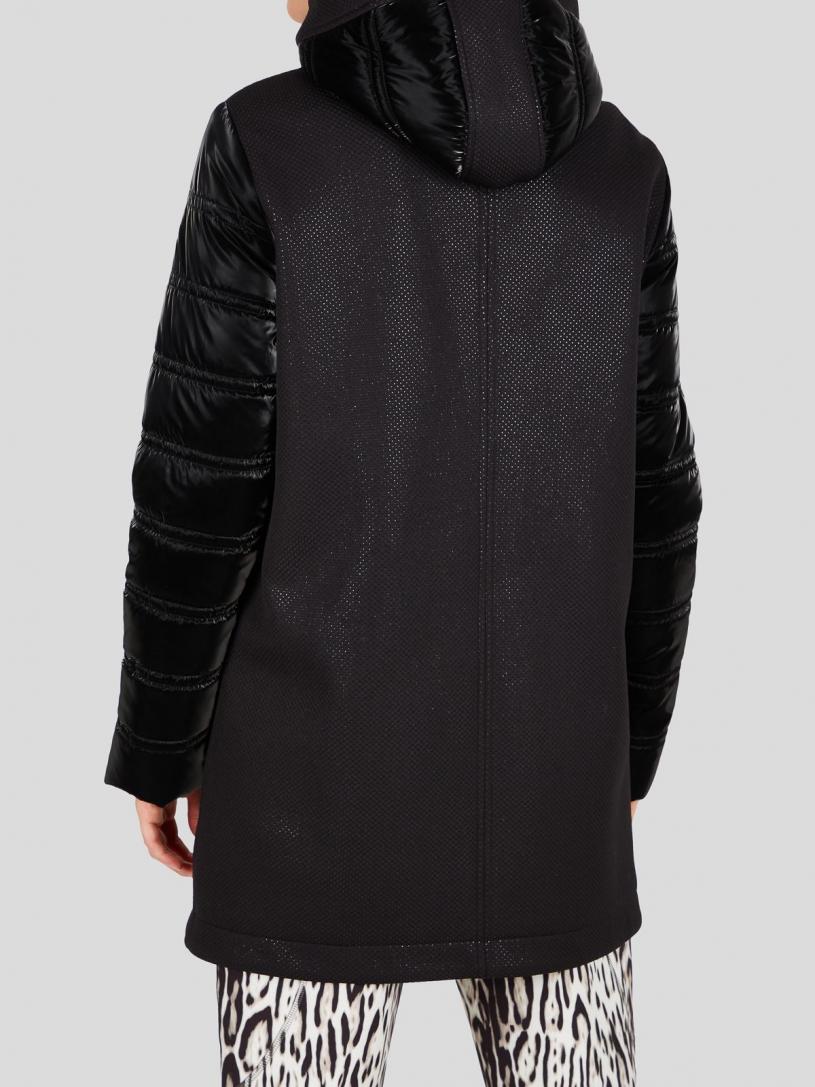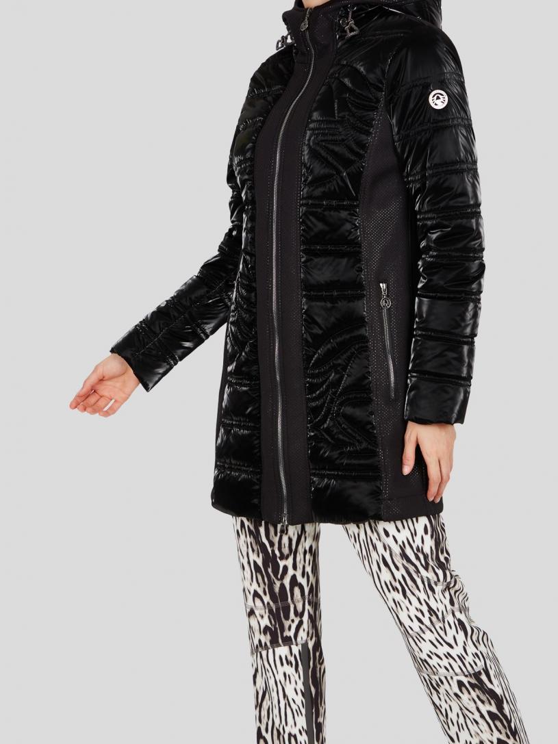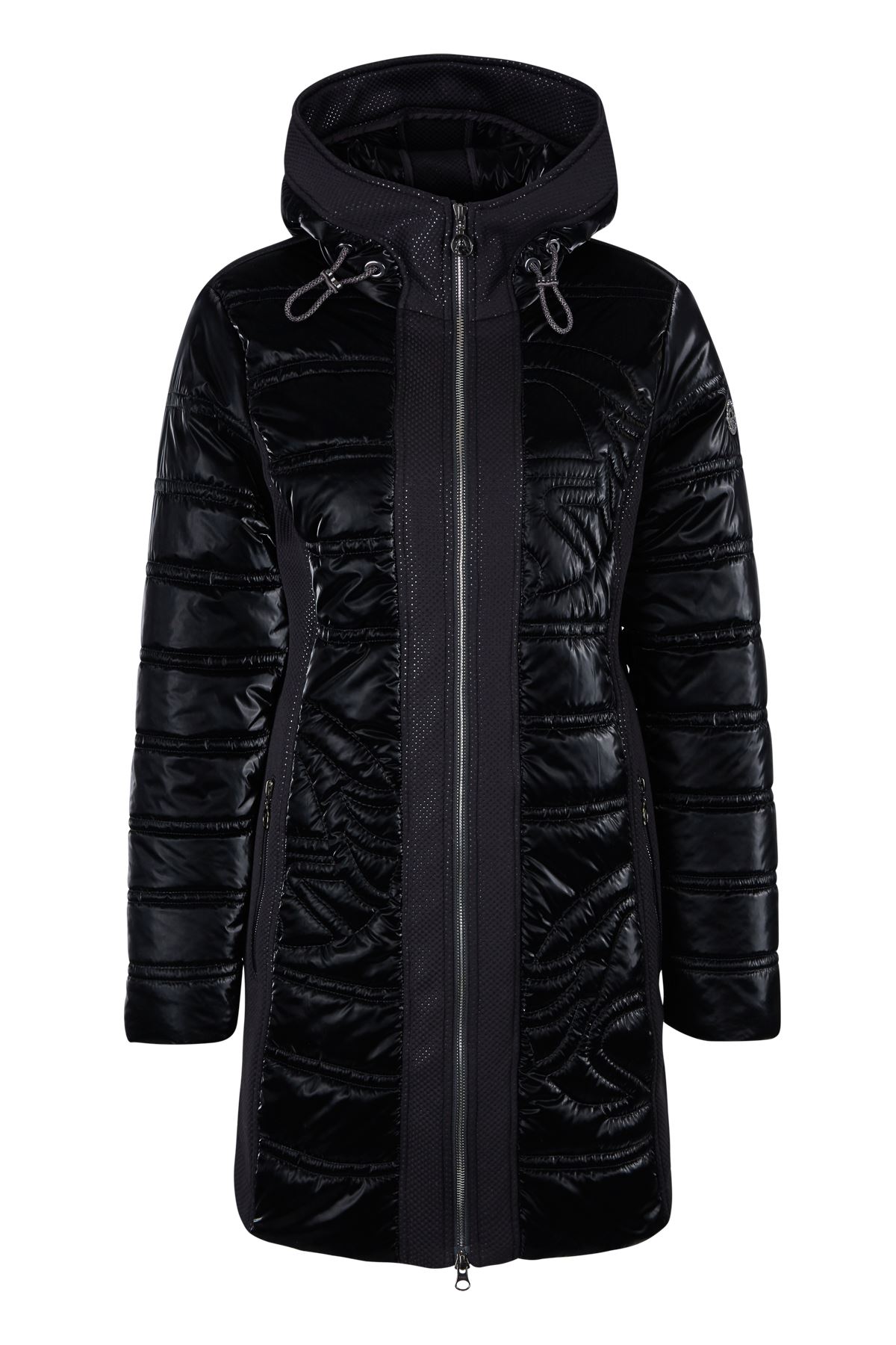 Der teilgefütterte Kurzmantel mit Kapuze und Kordelzug ist ein toller Alltagsbegleiter. Der Materialmix aus wattiertem Nylon mit Zierstepps im SPORTALM-Logo Design und gebondeten Strukturjersey macht den Mantel zu einem It-Piece. Der Jersey im Rückenteil weist eine Punktstruktur auf. Praktisch sind zum einen der Zwei-Wege-Reißverschluss in der vorderen Mitte und zum anderen die Eingriffstaschen mit Reißverschluss.