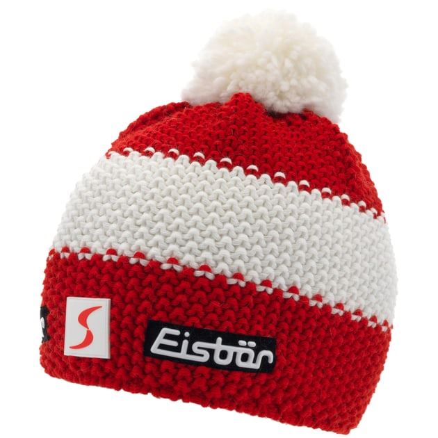 sportliche Bommelmütze von Eisbär mit Blockstreifen.