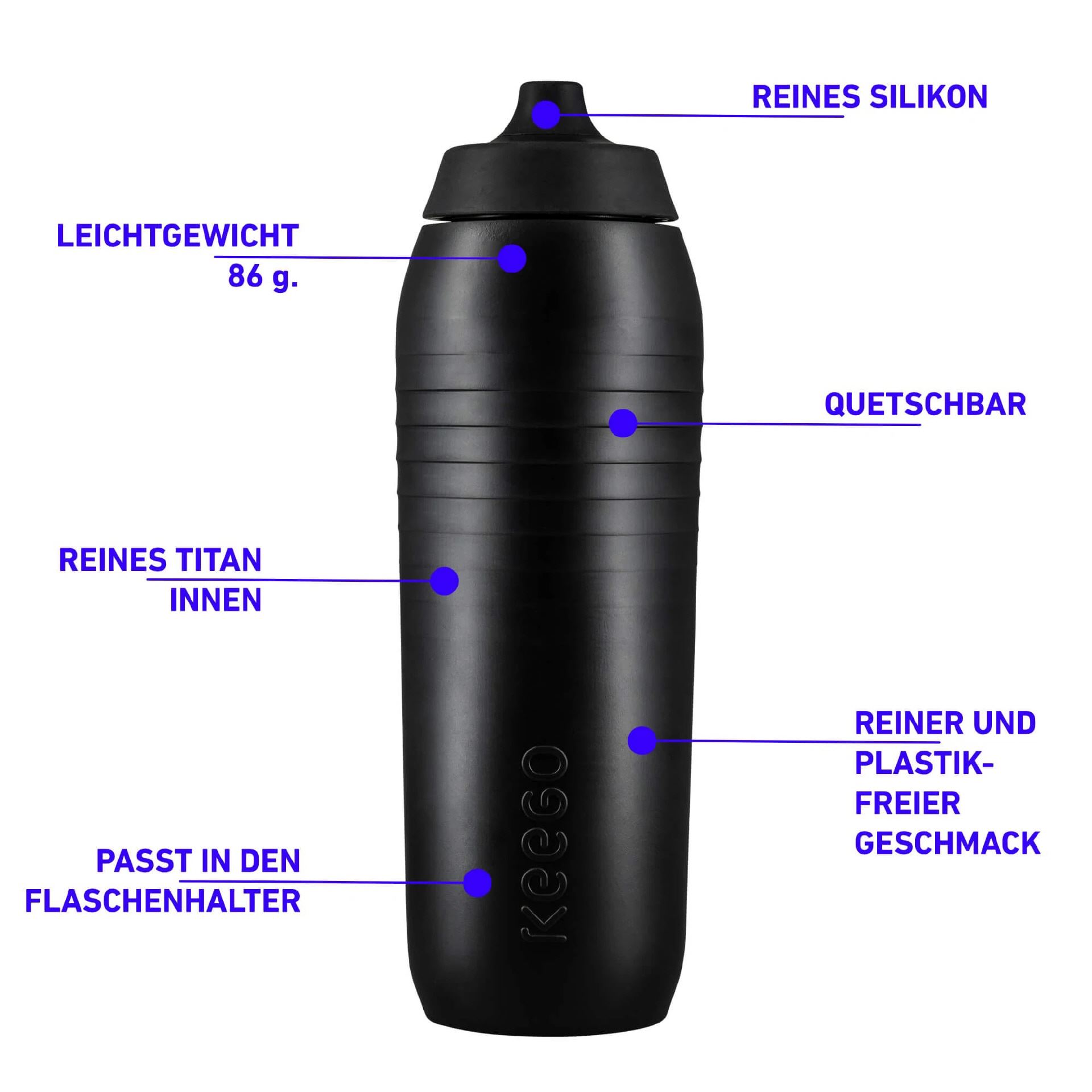 Die Evolution geht weiter. Die neue KEEGO Cycle der erste ihrer Art mit recyceltem Kunststoff in ihrer Außenhülle. Die Aufgabe war nicht leicht zu meistern und wir sind begeistert von dieser nächsten Entwicklungsstufe. Ein wichtiger Schritt in die richtige Richtung die KEEGO noch nachhaltiger zu machen - unter Beibehaltung der gleichen Qualität und Funktionalität. Die KEEGO ist die konsequente Weiterentwicklung zur saubersten Sportflasche aller Zeiten. Die bewährte Konstruktion mit einem Innenleben aus reinem Titan hält dein Wasser sauber und verhindert Schimmel. Die Außenhülle aus Soft-Touch-Kunststoff bietet zusätzlichen Halt und ermöglicht ein leichtes Zusammendrücken. Der komplett neu gestaltete Verschluss lässt sich einfach zerlegen, reinigen und wieder zusammensetzen. Dabei verhindert der reine Silikon Noppen jeglichen Kunststoffkontakt. Das Ventil öffnet sich beim Zusammendrücken der Flasche und ermöglicht so das einhändige und sportliche Trinken.