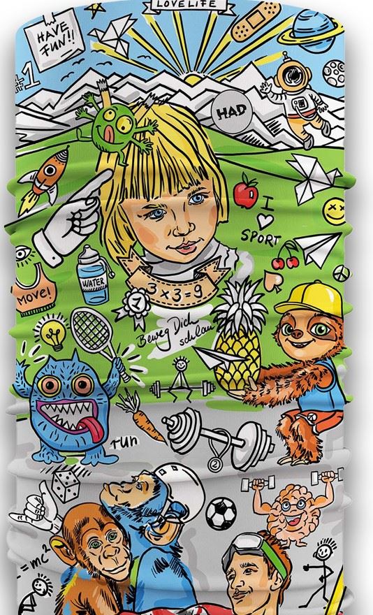 Dieses knallbunte Design entstand im Rahmen der Felix Neureuther Stiftung für das 100% recycelte und multifunktionale H.A.D. Original Schlauchtuch für Kinder , welches aus 100% recycelter und scheuerfester Powerstretch-Faser besteht und nahtlos und aus einem Stück hergestellt wurde.