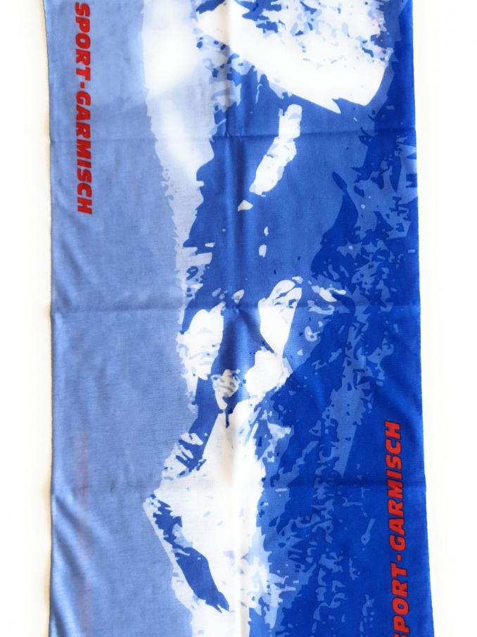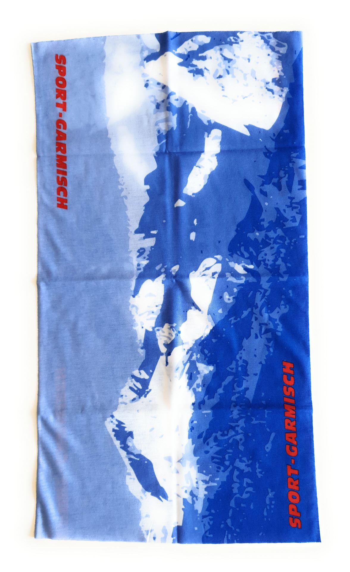 Mikrofaser-Multifunktionstuch mit Garmischer Bergmotiv Print und Logo Sport-Garmisch Farbe: Blau